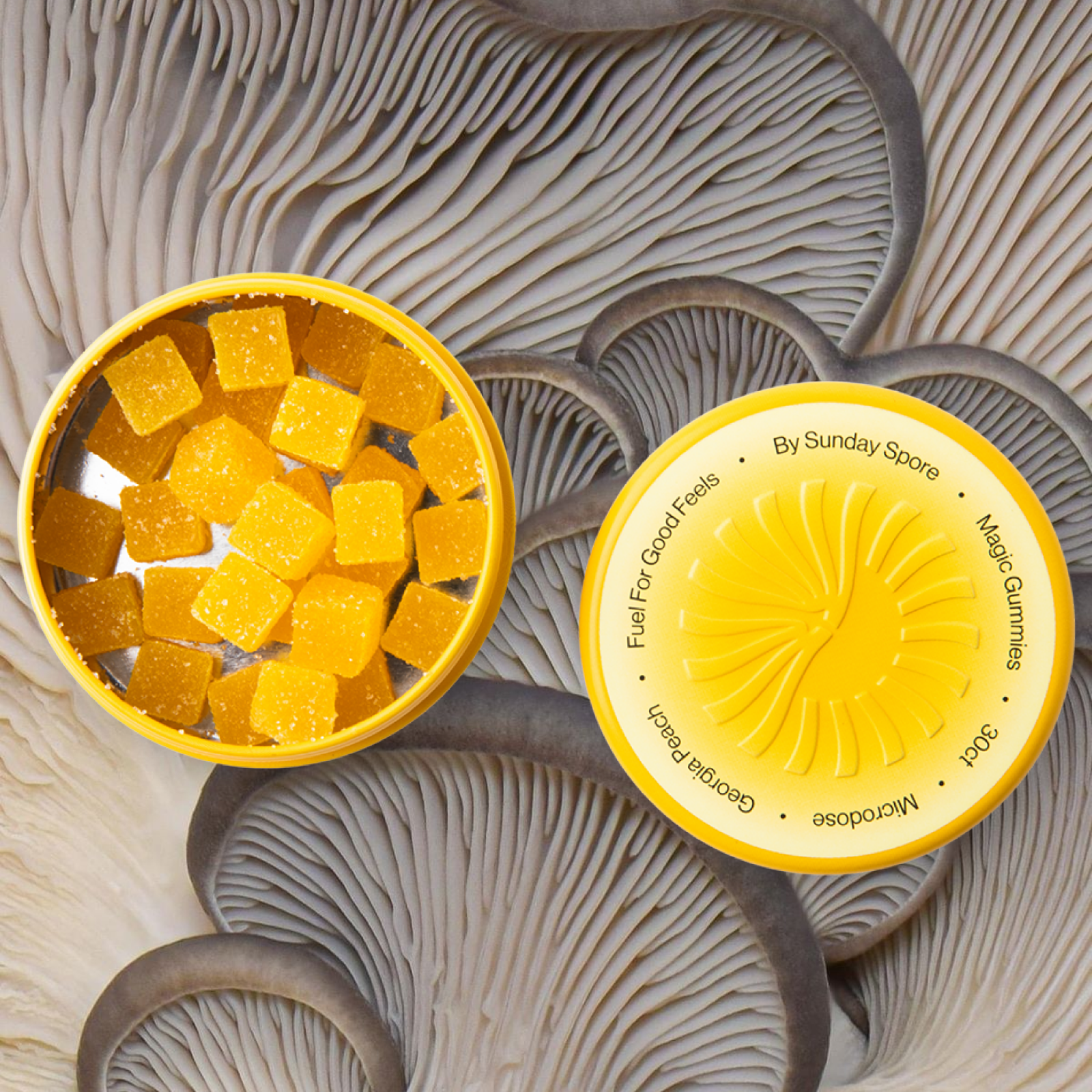 Ingredients: Pectin, sugar, organic tapioca syrup, citric acid, sodium citrate, natural peach flavoring and color, mushroom extract, coconut oil, mct oil