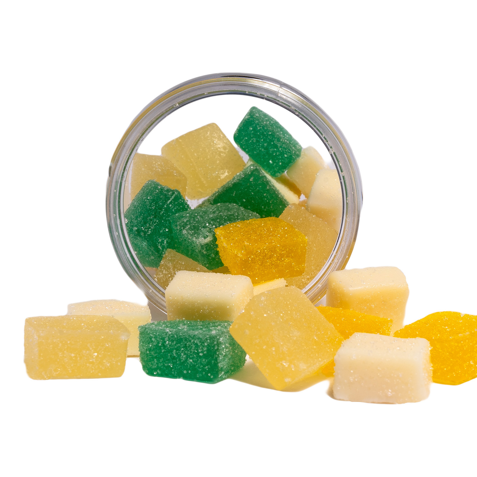 Pineapple Live Rosin Infused Gummies (1000ct). Each gummy contains 10mg Hemp Derived THC. 100% Solventless, 100% taste. These gummies pack a punch! Ingredients: Corn Syrup (from Corn), Sugar, (from Beets), Water, Gelatin, Citric Acid, Natural and Artificial Flavors, Pectin (Derived from Fruits), Vegetable Oil, Yellow #6, Blue 1, Red #40